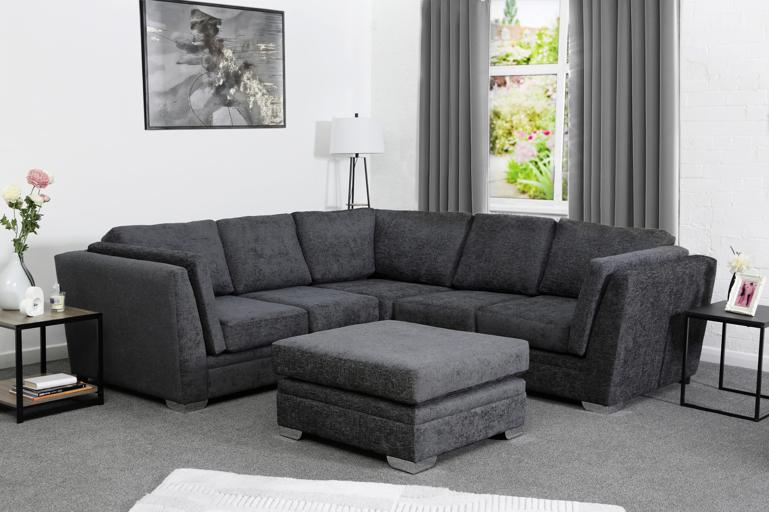 Joshua Corner Sofa 2&2 Seater with Footstool Charcoal